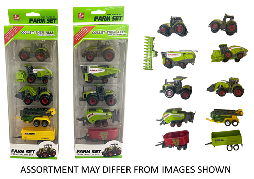 5pce Diecast Farm Vehicle Set includes 2 tractors, farm cutter, crop cutter and plantation trailer.