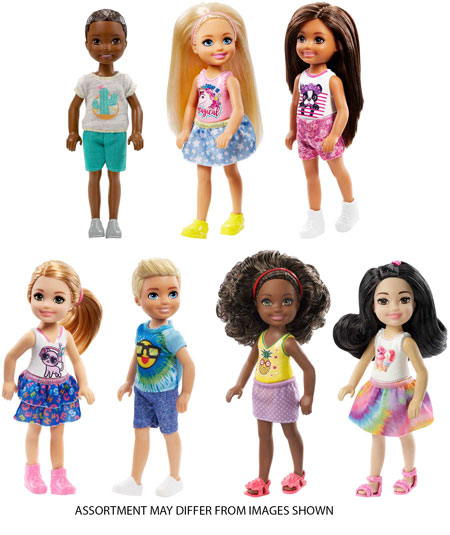 Chelsea™ doll and her friends can play out so many fun stories! These adorable dolls each wear bright colors and come with removable fashions and a cardboard piece for more play possibilities. Added diversity and more variety in looks and hairstyles provide more ways to spark imaginations and play out unlimited friendship stories. Collect them all for even more fun! Includes doll wearing fashion and accessory. Each sold separately, subject to availability. Colors and decorations may vary.