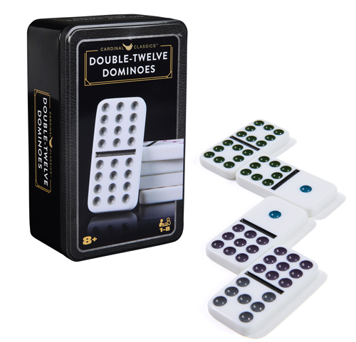 Mexican Double 12, 91 Domino Color Dot Set with Aluminum Carry Case. Set includes basic starter piece, double 12 color dot dominos, nine markers, score pad. Packed in an 8"" X 8"" X 3.5" aluminum storage case. For 2-8 Players & Age: 8 and up