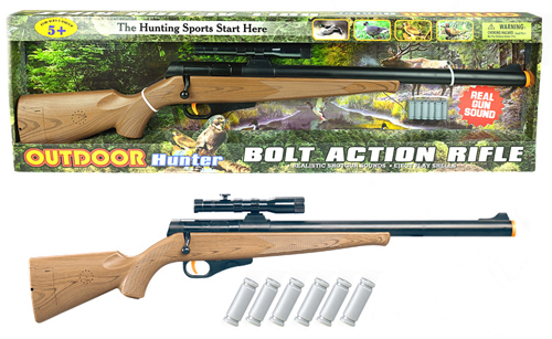 Rifle with real gun sound with realistic bolt action functions. AGE 5+