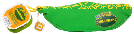 My First BANANAGRAMS features lowercase letters that help children develop a love for word games and aligns perfectly with reading curriculums. Also included are combo-letter word building tiles which are the first step in word creation. For 1 to 4 players, ages 4 and up.