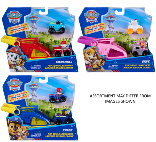 Join the PAW Patrol Pup Squad with the Pup Squad Launcher 2-Pack! This set includes two 2.5-inch Pup Squad Racers, to launch into exciting rescue missions. Kids simply place the racers in the launcher, pull the handle, and watch them zoom into action! Designed for little hands, these toy vehicles inspire imaginative storytelling, from thrilling rescues to fast-paced chases. Plus, with the built-in key lock storage, racers can be safely secured and taken on the go for adventures anywhere. Whether it's a birthday, holiday, or just because, this set is just right for inspiring creativity and imagination. Relive cherished moments from PAW Patrol seasons, such as the Fire Rescue and the PAW Patrol Movie or create entirely new adventures with individual PAW Patrol pups and their respective toy cars, for endless hours of turbo-charged adventures inspired by the series.