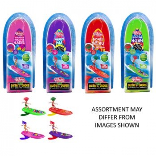 Surfer Dudes are the worlds first self-righting, self-surfing toy! Toss your dudes into the surf...They’ll catch and shred the waves, throwing down rippin’ tricks all the way back to you! Surfer Dudes feature an internal ballast system, hydro-boomerang technology and unsinkable foam board with gnarly graphics! There are 12 Surfer Dudes to collect including Newcastle Nat, Torquay Todd, Wollongong Will, Cottesloe Col, Gold Coast Gabi and Mooloolaba Mav. Look out for the new series launching next summer! AGE 6+