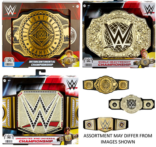 WWE® Championship Titles let every kid in the WWE® Universe become a champion. Play out championship victories of WWE Superstars. This authentic-style title has a one-time adjustable belt (3+ ft long) that can strap around the waist of children 6 years or older. Colors and decorations may vary.